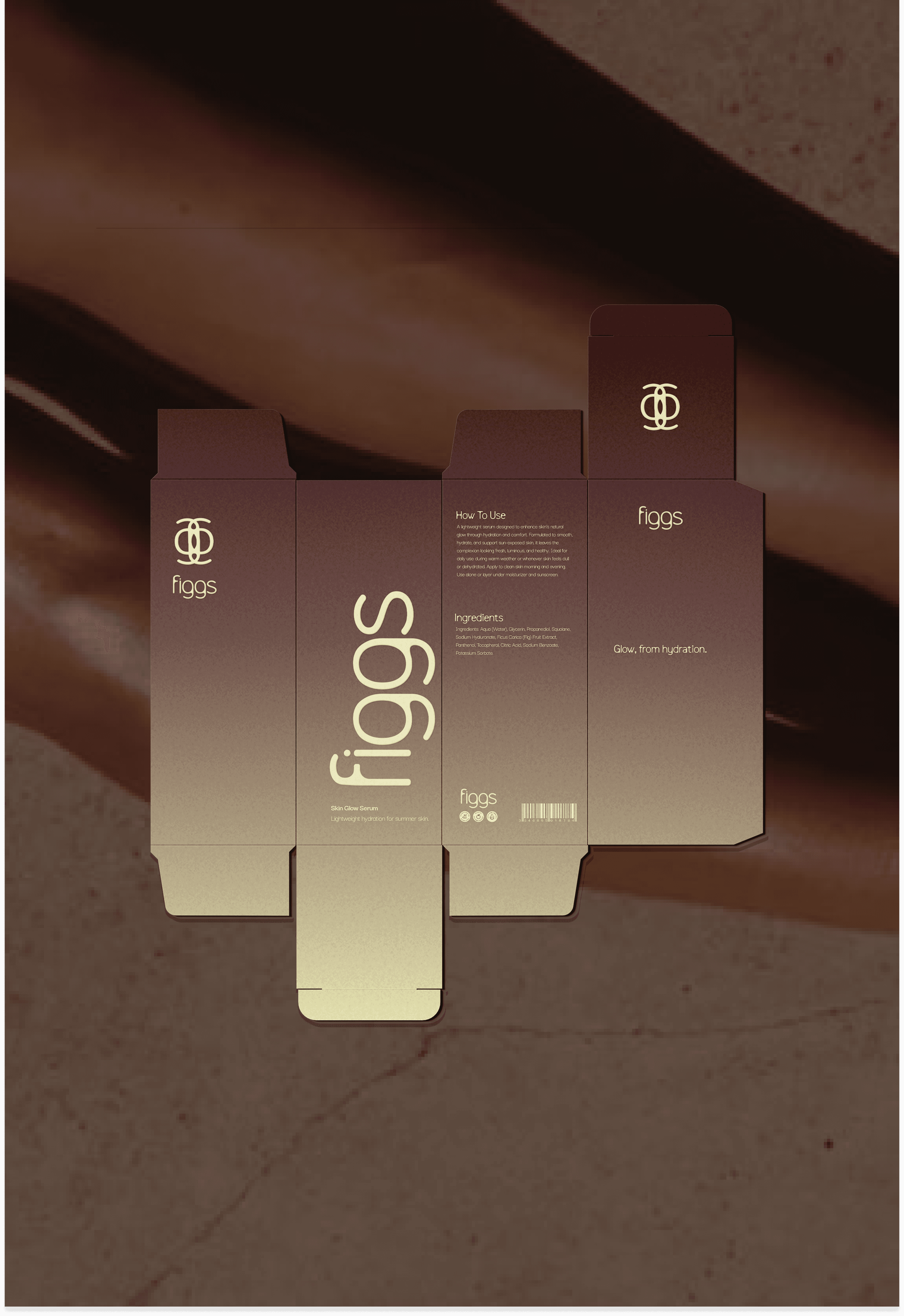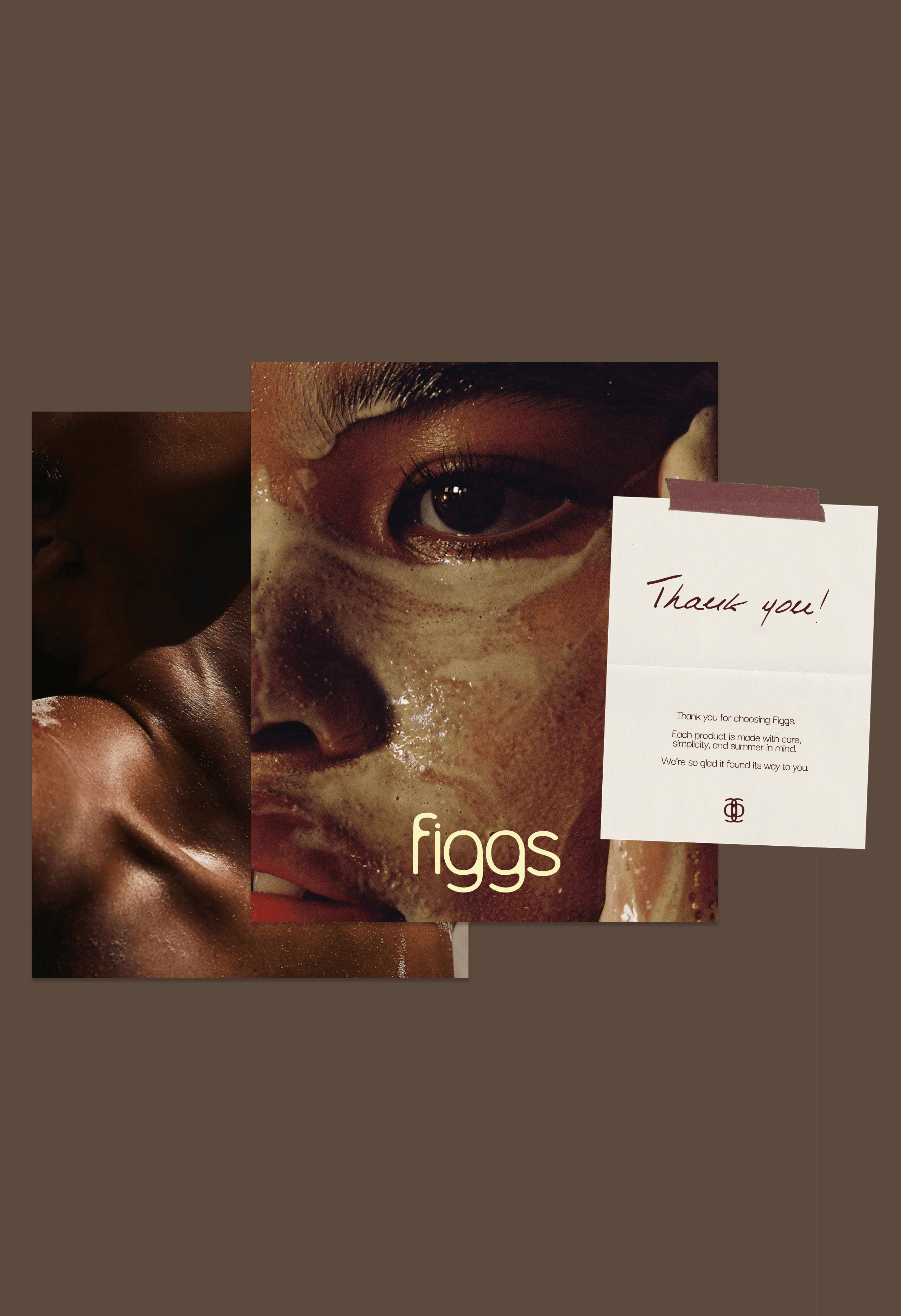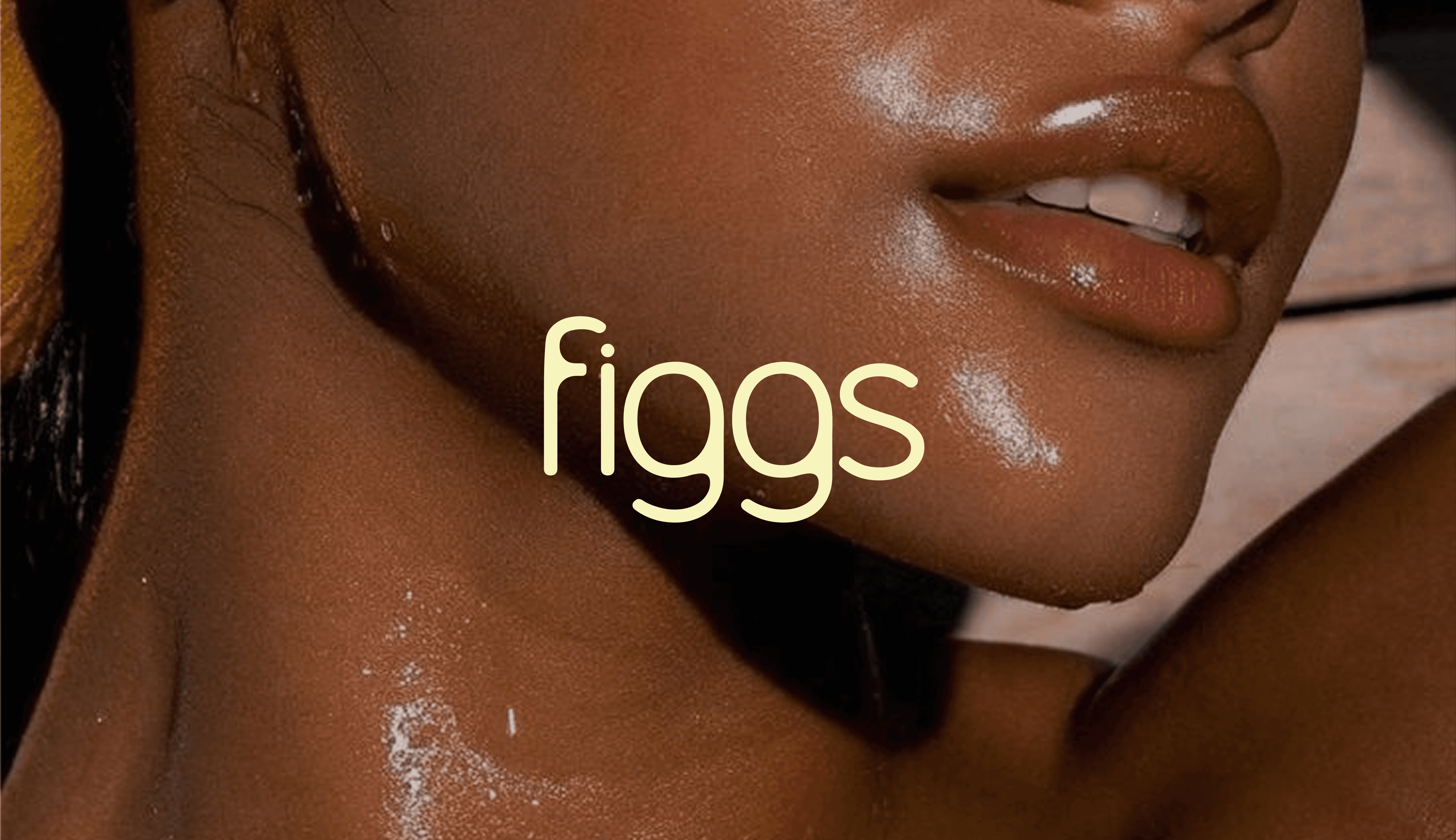 The Figgs brand identity is built around a warm, sun-drenched palette of deep fig tones, soft golds, and earthy neutrals, paired with glossy skin imagery and clean typography to create a sensual, summer-focused skincare brand positioned around glow, hydration, and effortless radiance.