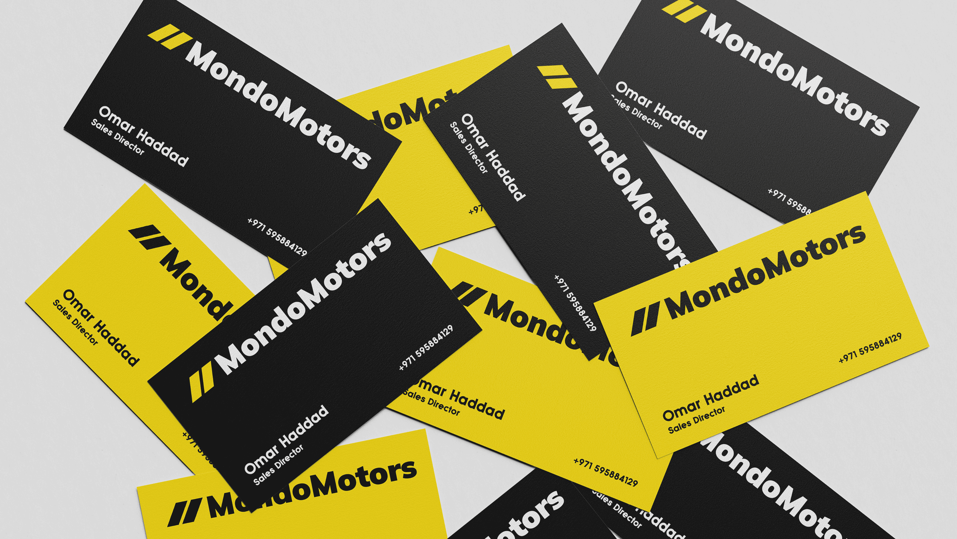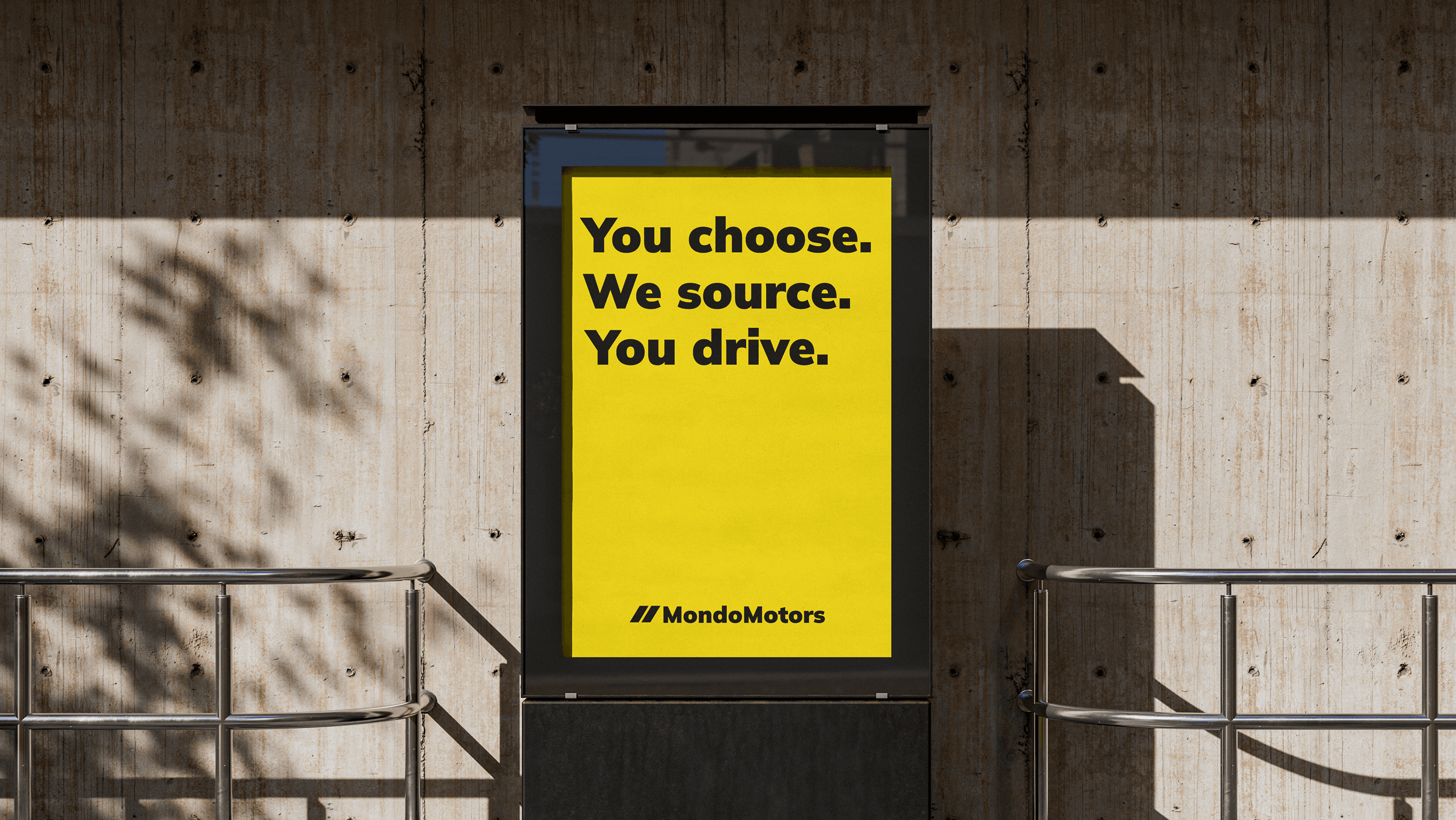 MondoMotors is a premium car sourcing brand focused on rare and collectible vehicles. The identity uses bold yellow and black, sharp angles, and strong typography to feel fast, modern, and trustworthy, supporting a service built to find the cars most people cannot.